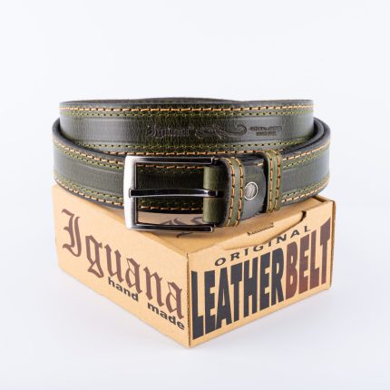 Tamno zeleni kaiš 3,5cm – dupli štep žuti konac