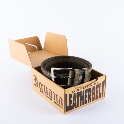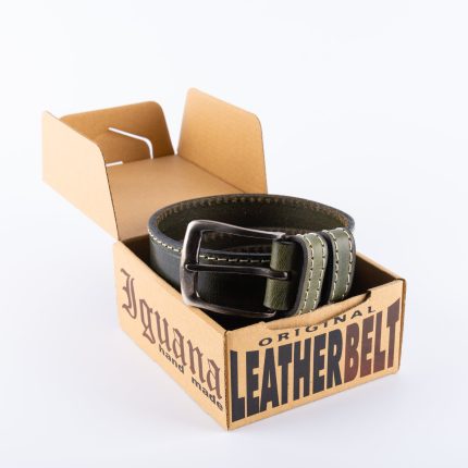 Tamno zeleni kaiš 3,5cm – dupli štep beli zeleni konac