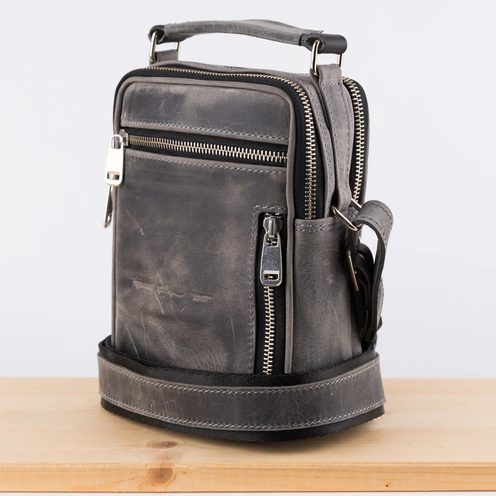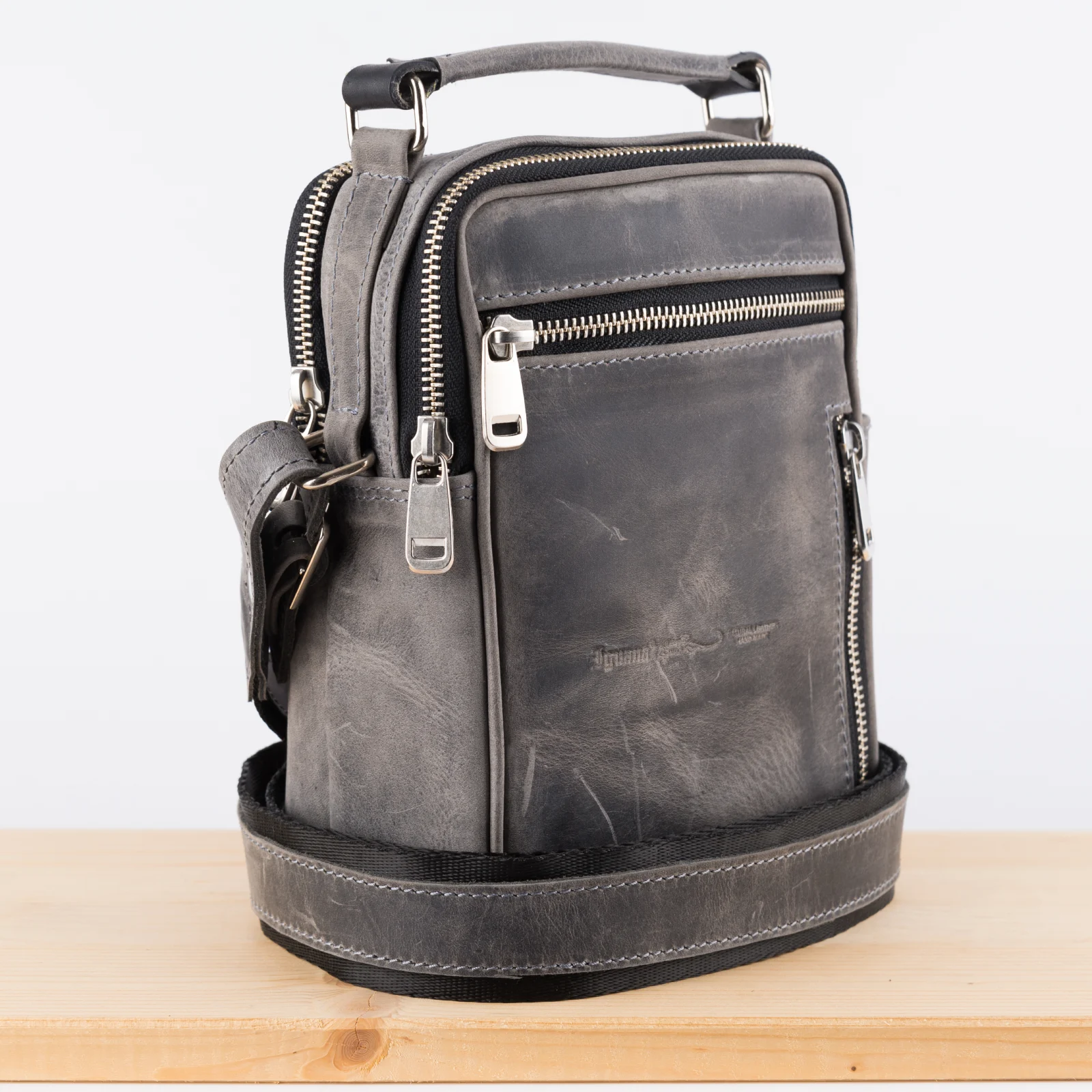 Kožna tašna PES siva (brušena koža)
